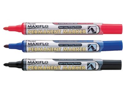 - De Pentel Maxiflo Permanent Marker NLF50 is een milieuvriendelijke watervaste merkpen met een ronde punt.